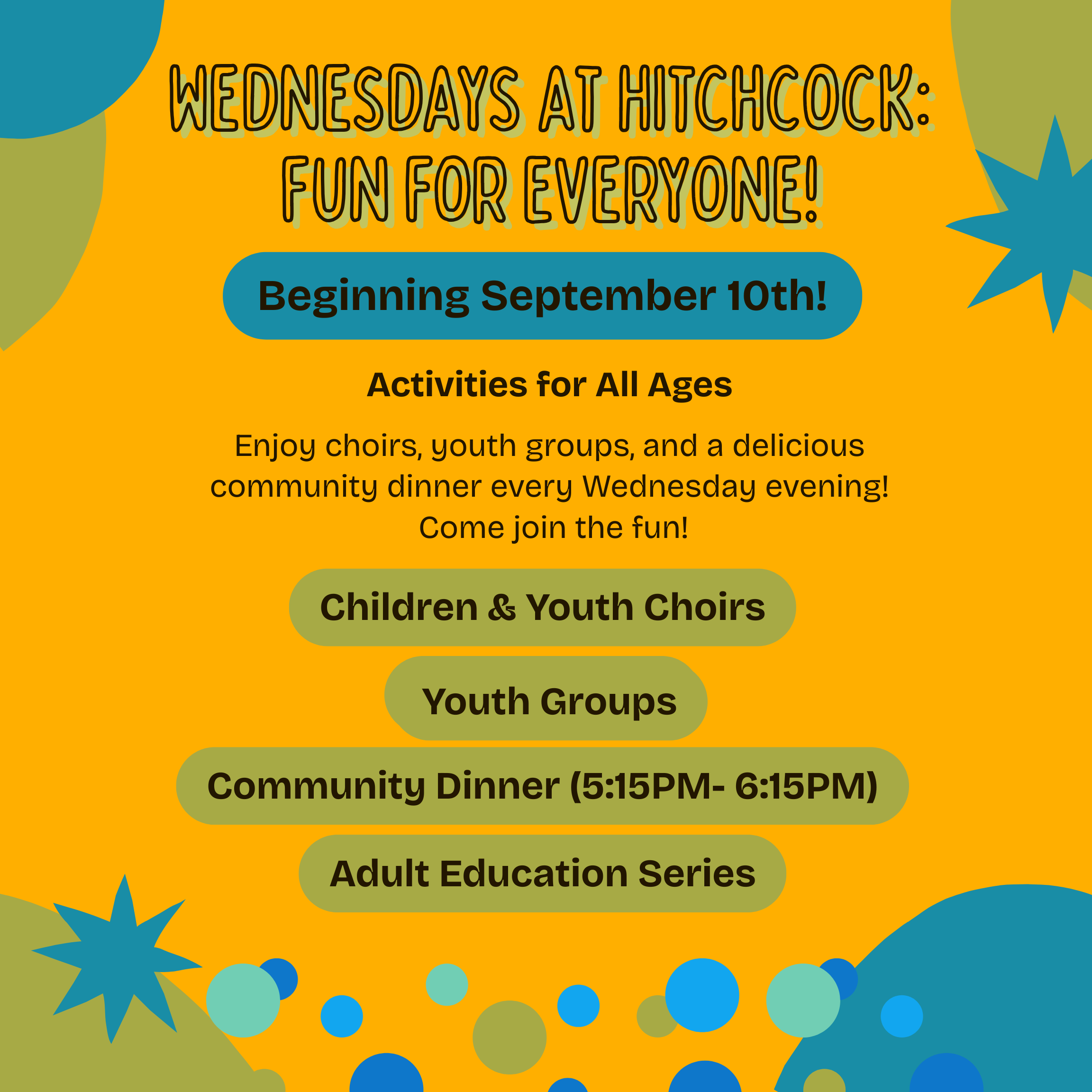Hitchcock is known for our outreach work, music, hospitality, and diversity. We live to be of service to each other and to others! You are welcome here because everyone is welcome here.
